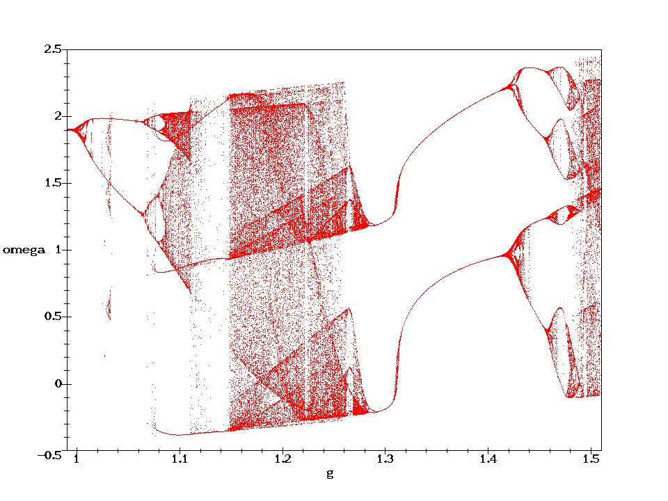 The diagram shows the Poincare points of a driven damped pendulum described by the