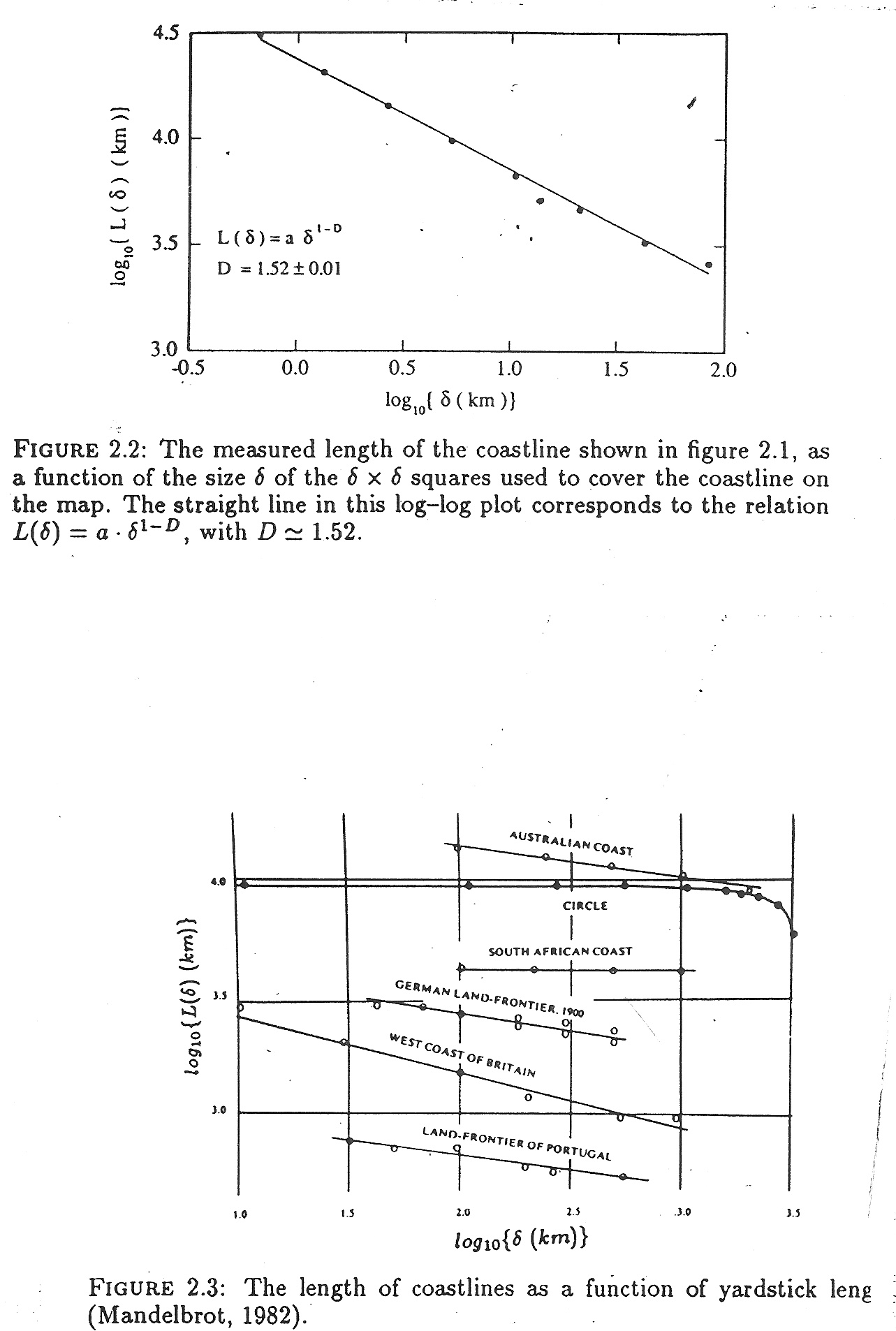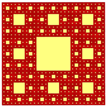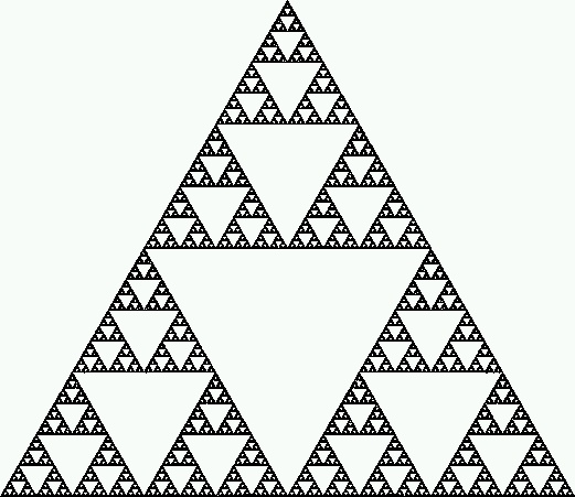 Koch curve, Sierpinski triangle, Sierpinski carpet